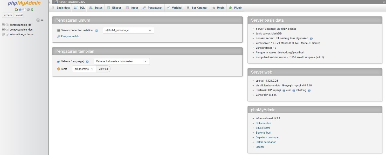 - Masuk “ke phpMyAdmin” di hosting baru.